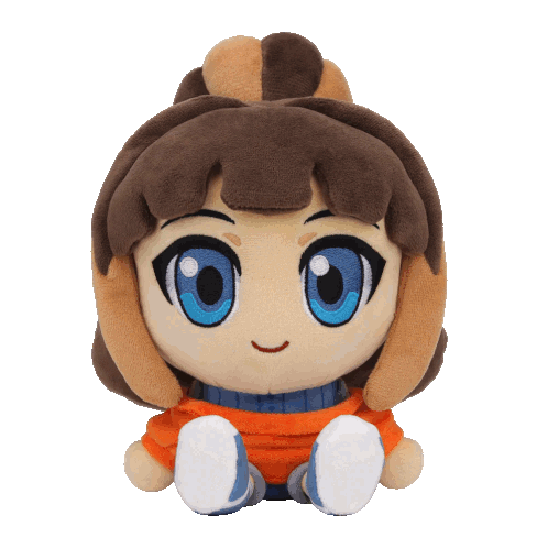 Peanut, the plush character from Crush Crush, spins playfully on a white background.