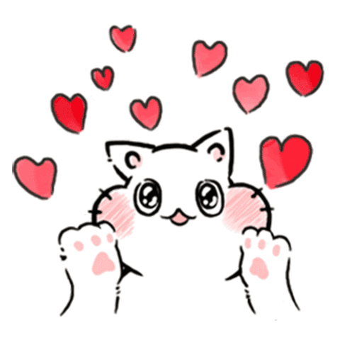A cute, hand-drawn cat character sends out hearts, expressing love and affection. Perfect for 'Crush Ily Sign' messages.