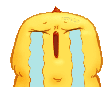 An adorable animated yellow chick character transitions from focused work to crying profusely with big tears.