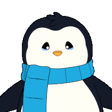 An adorable pudgy penguin wearing a blue scarf, crying profusely with large streams of tears flowing from its eyes.
