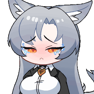 An anime-style girl with grey hair and wolf ears cries intensely, expressing deep sadness or distress.