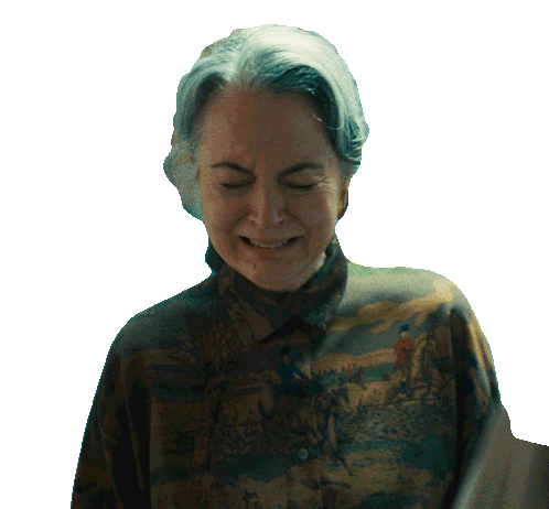 Eric, a woman with gray hair, is seen crying and then laughing, covering her mouth in an emotional moment.