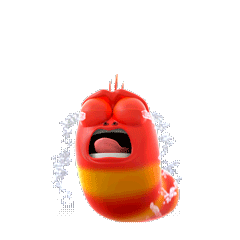 A red Larva cartoon character sticker crying with its mouth open and tongue out, expressing intense emotion.