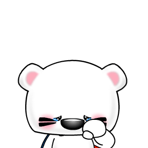 A cute cartoon bear with a sad expression and a large blue teardrop background, blinking its eyes sadly.