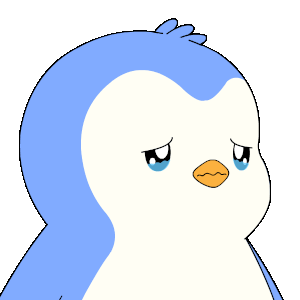 A blue and white Pudgy Penguin character expresses deep sadness, with tears welling up and a pleading, upset expression.