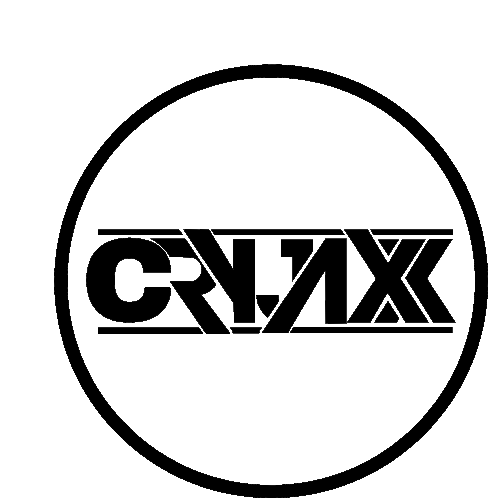 a black and white logo for cryjax in a circle on a white background