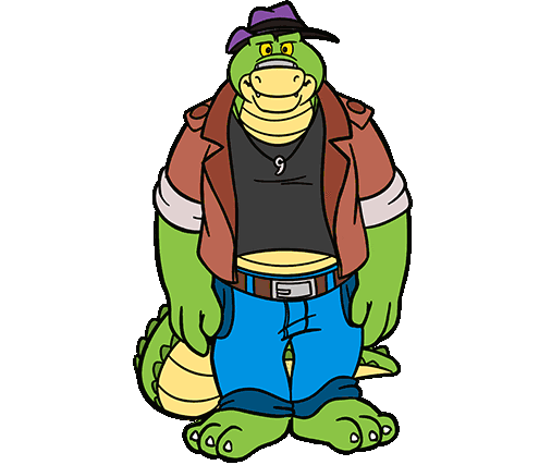 Crype150 Cowcat's Brok the Investigator, a cartoon alligator, spins around with a magnifying glass.