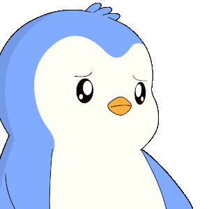 A cute cartoon penguin holds a golden Ethereum coin, looking a bit sad or worried, representing crypto market emotions.