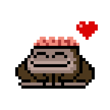 A pixel art Cryptoadz Gremplin character, a happy toad with an exposed brain and a floating heart, radiating good vibes.