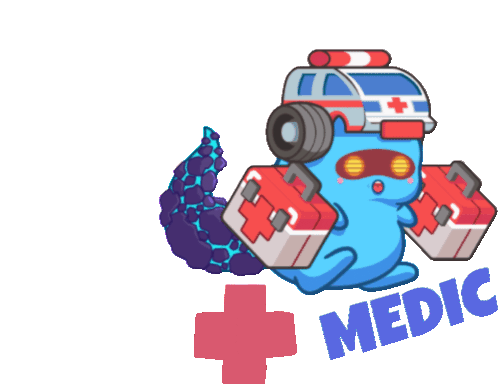 Wetty, the Cryptoids medic, is ready for action with an ambulance hat and two first-aid kits, featuring a red cross.
