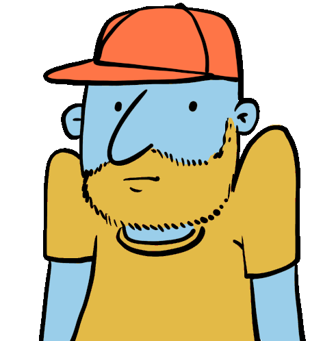 Stylized character from Csudi Creative Shop with an orange cap and yellow beard, spinning and distorting its head.