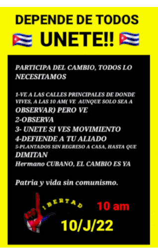 Animated sticker featuring a Cuban poster with the Spanish slogan 'Depende de todos, únete' (It depends on everyone, join).