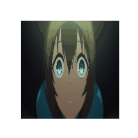 Amiya from Arknights with wide, shocked eyes transforms into a rapidly spinning cube, creating a dynamic barrel roll effect.