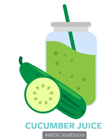 Animated sticker featuring a fresh cucumber, a slice, and a refreshing glass of green cucumber juice.
