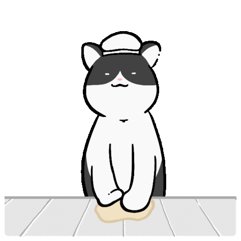 An adorable black and white chef cat happily kneads dough on a table, preparing a delicious meal with a cute chef's hat.