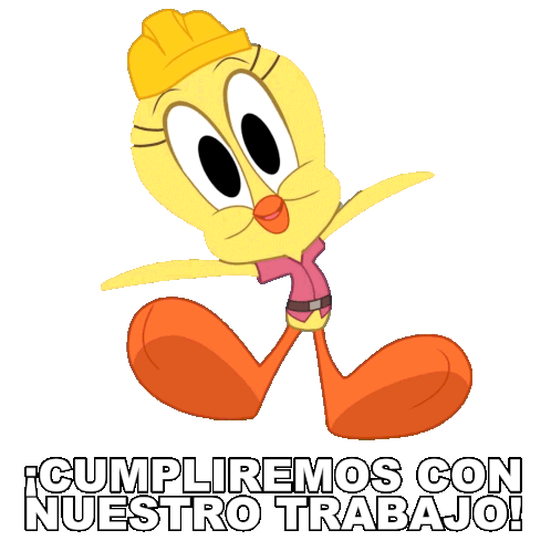 Piolín from Looney Tunes, wearing a hard hat, happily declares '¡Cumpliremos con nuestro trabajo!' in this sticker.