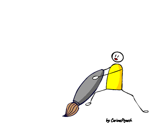A stick figure character, created by Piyuesh Modi (Curiouspiyuesh), riding a large paintbrush, symbolizing creativity and art.