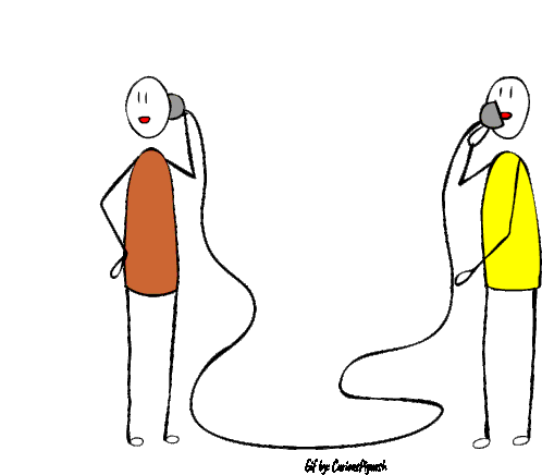 Curiouspiyuesh and Piyueshmodi's stick figures show a string phone communication breaking, symbolizing a disconnect.