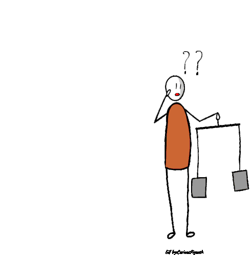 Animated sticker by Curiouspiyuesh Piyueshmodi featuring a confused stick figure assessing an unbalanced scale.