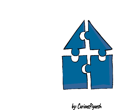 Curiouspiyuesh and Piyueshmodi's sticker featuring blue puzzle pieces forming a house, symbolizing teamwork and unity.