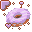 An animated cursor points to a vibrant purple pixel art donut adorned with hearts and sparkling effects.