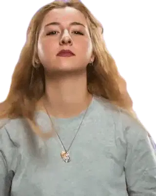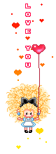 Animated pixel art sticker of Curly Hair Bboguri as Alice, holding a heart balloon with 'Be You' text.