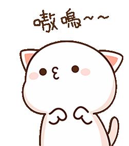 An adorable white cartoon cat makes a cute kissing face, then opens its mouth slightly, expressing affection.