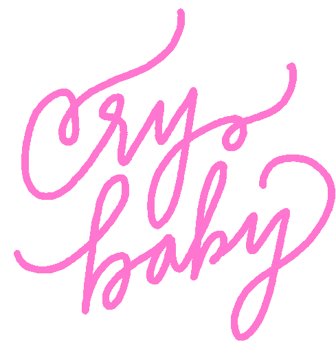 Pink handwritten 'Cry Baby' text on a white background, conveying emotional and sad feelings.
