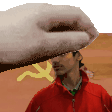 Ammar Noob pixel art sticker featuring a hand holding a man's head in front of a Soviet flag.