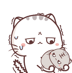 A large anxious cat sweats and trembles while holding a small, grumpy kitten. A cute and relatable sticker for stressful moments.