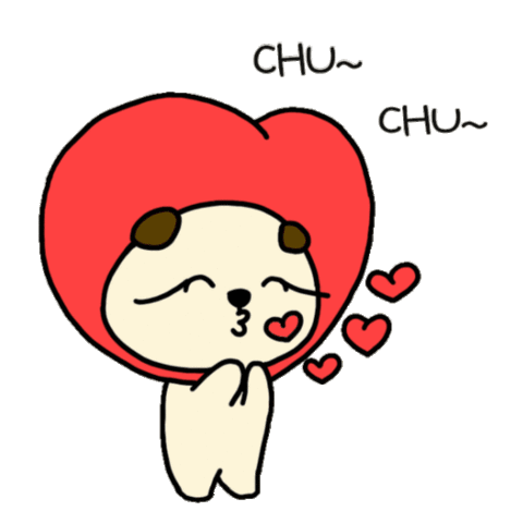 An adorable cartoon character with a heart-shaped head blows a sweet kiss, surrounded by floating hearts, conveying affection.
