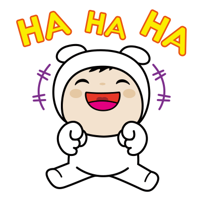 A cute cartoon character in a white rabbit costume laughing heartily with 'HA HA HA' text above its head.