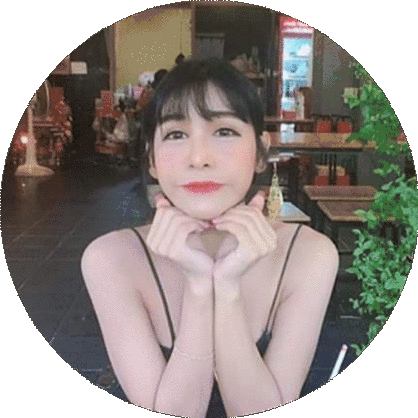 A cute young woman with black hair and bangs makes a charming pouty face, looking directly at the viewer.