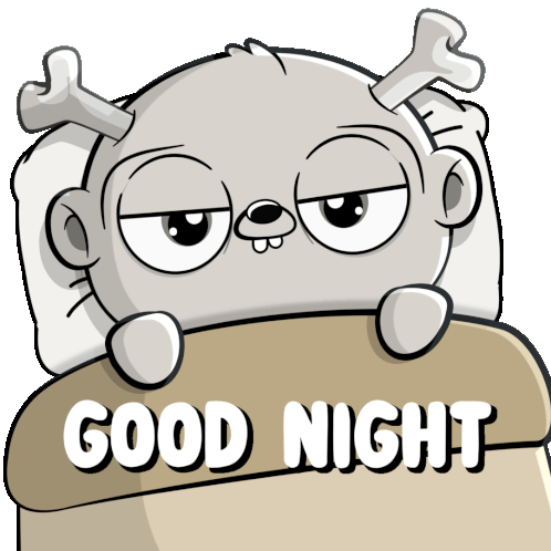 A cute, sleepy cartoon character in bed, closing its eyes and wishing 'Good Night'.