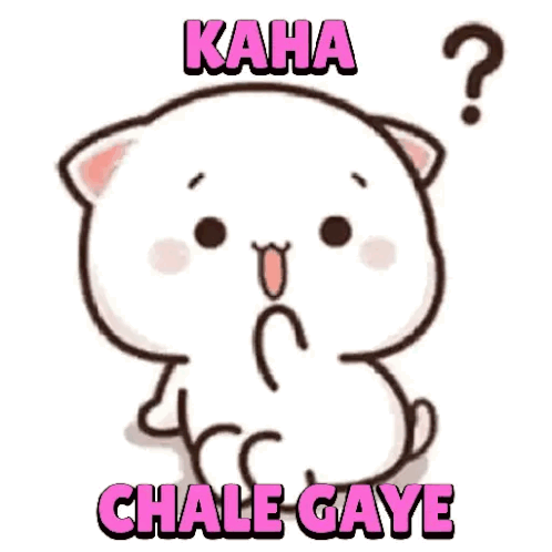 An adorable animated white cat sticker with a question mark, asking 'Kaha Chale Gaye?' (Where did you go?) in a cute, curious manner.