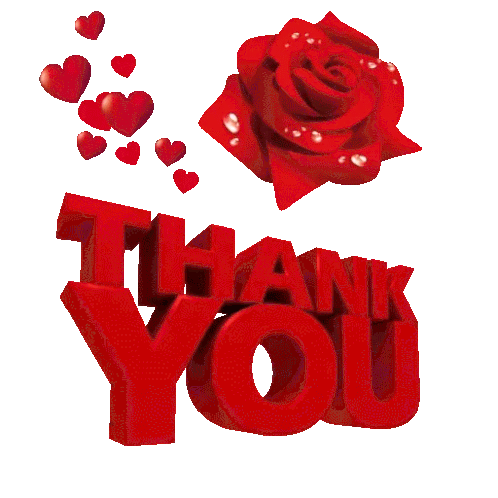 a red rose is surrounded by red hearts and the word thank you
