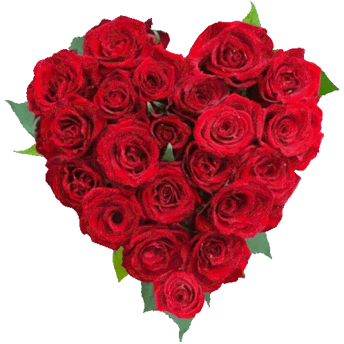 a heart made of red roses with green leaves