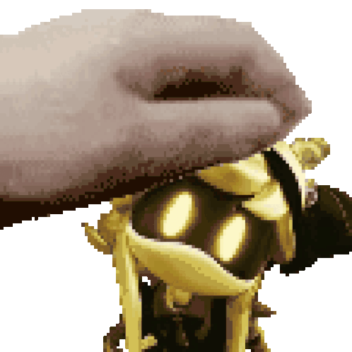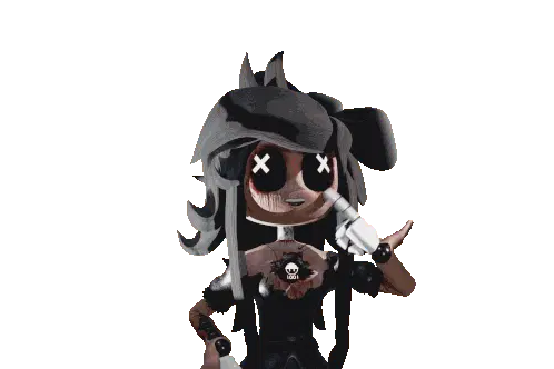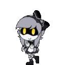 Animated sticker featuring Cyn from Murder Drones, possibly in a pixelated style, holding a golden object.