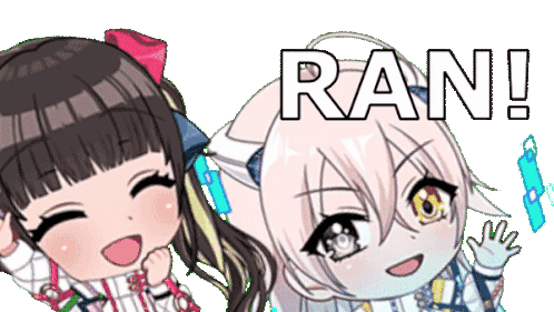 D4DJ Unichord chibi girls animated sticker featuring 'RAN!' and 'WAKARAN' text, expressing confusion or excitement.