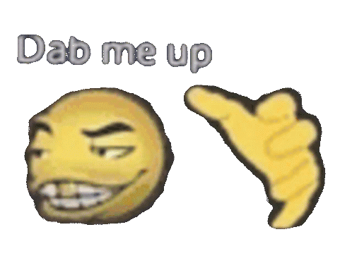 An animated sticker showing a winking emoji face and a hand performing a 'dab me up' gesture, followed by a handshake and a kiss.