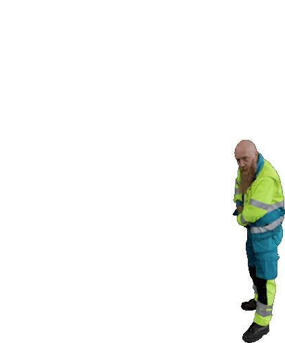 A person in a high-visibility uniform, possibly a firefighter or ambulancier, wields a green lightsaber like a Jedi.