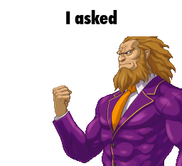 Dai Jun Huang from Ace Attorney Investigations 2 flexing his arm with the 'I asked' meme text.