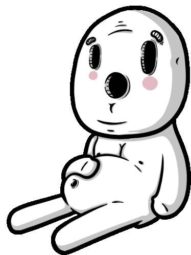 Dai Mi Aka Stupid Rice, a cute cartoon character with a full belly, exhales a puff of smoke, indicating satisfaction.