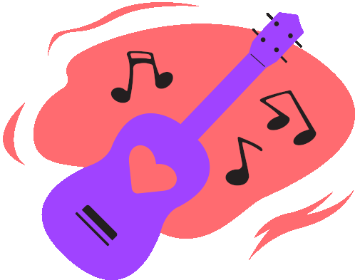 A vibrant purple guitar with musical notes, representing Damakolahiko Pinoy music.