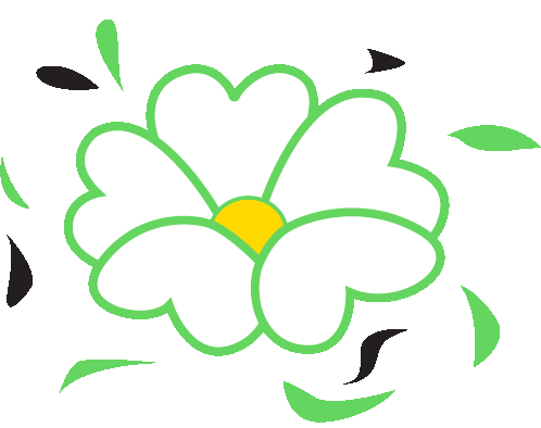 A stylized white Sampaguita flower with a yellow center, outlined in green, surrounded by green and black abstract shapes, representing Filipino culture.