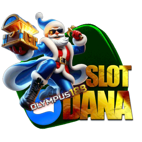 Santa Claus holds a treasure chest with 'SLOT DANA' and 'OLYMPUS188' text, promoting slot games.