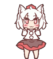 A cute chibi anime character with cat ears and a red bow dances playfully, swaying her arms and body.