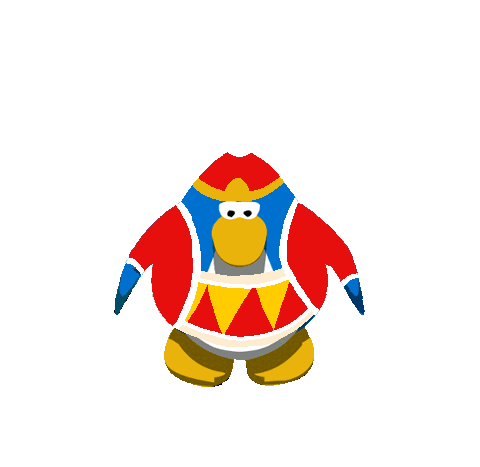 King Dedede, styled as a Club Penguin character, performs a lively dance, moving and grooving with various animated steps.