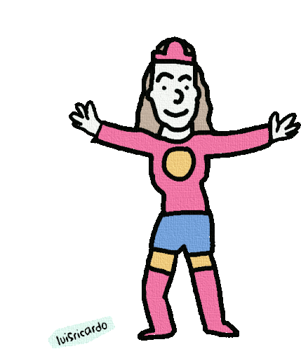 Luis Ricardo's Susana Distancia sticker, a cartoon female superhero in a pink outfit striking a confident dance pose, representing Mexico.