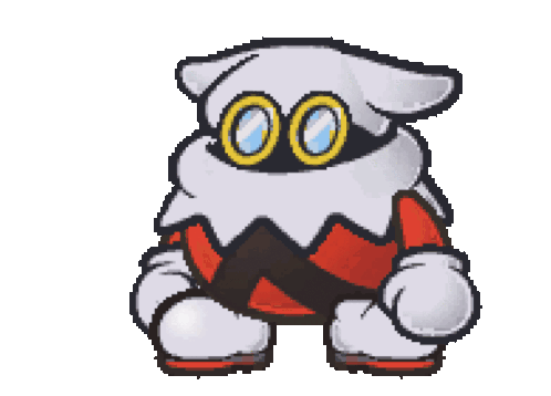 An X-Naut character from Paper Mario performs a lively, bouncy dance, moving its arms and legs rhythmically.